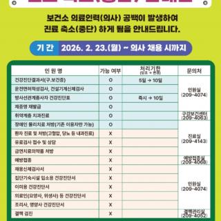 동구보건소 진료 중단 사태 즉각 해결해야 합니다! 동구보건소 진료 및 건강검진 업무 중단으로 시민 불편이 심각합니다 울산 동구보건소 의사 2명의 사직으로 2월 23일부터 진료 및 건강검진 업무가 의사 채용 시까지 무기한 중단됐습니다. 의사 채용공고에도 응시자가 없어 일주일이 지났지만, 해결의 기미가 보이지 않습니다. 그로 인해 고혈압·당뇨 등 만성질환 진료, 금연 치료 처방, 집단 기숙 시설 입소 건강진단서 발급, 이...