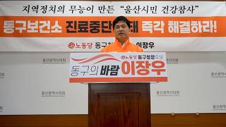동구청장 후보 이장우는 공공의료와 울산시민의 건강권을 실현하기 위해 온 힘을 다할 것을 약속드리며, 지역 자치단체장들과 국회의원들에게 책임 있는 사태 해결을 엄중히 촉구합니다.
