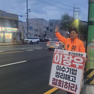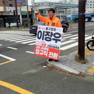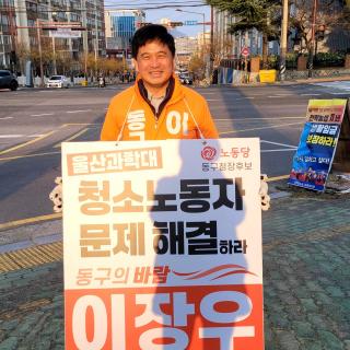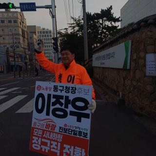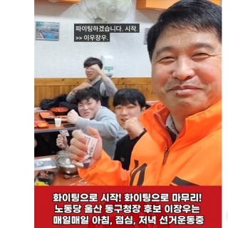 노동당 울산 동구청장 후보 이장우는 화이팅으로 선거운동 시작! 화이팅으로 시작! 화이팅으로 마무리! 노동당 울산 동구청장 후보 이장우는 매일매일 아침, 점심, 저녁 선거운동중!
