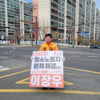 동구청 앞 어제 동구청 앞을 지나다가 지역을 청소하시는 환경미화원들의 집회 현장을 방문했습니다. 업체 교체 후 3명이 해고되고, 조합원이라는 이유로 임금 차별을 받고 계십니다. 아직도 이런 일이 일어난다는 게 답답할 따름입니다. 동구청의 적극적인 해결을 촉구합니다. 오후, 대송시장 일대 명함을 배포하고 울산과학대 앞에서 피켓 선전을 진행했습니다. 퇴근 시간, 남목 마성터널 앞 퇴근하시는 시민 여러분께 인사드렸습...